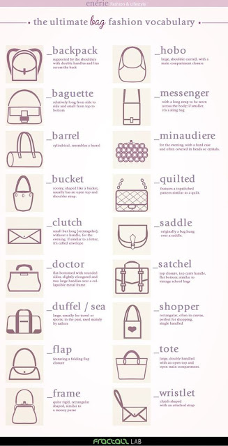 A lady needs a variety of purses. Here is a nice infographic that lists the different types of purses. I just "goodwilled" some old purses and I am looking to purchase some new ones.